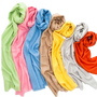 Der federleichte Kuschelkaschmir, der auch als Stola getragen werden kann, ist nicht nur wohltuend bei kühlen Sommerbriesen, sondern ein wichtiges Accessoire für stylische Looks. Ein handtaschenfähiger Weggefährte.